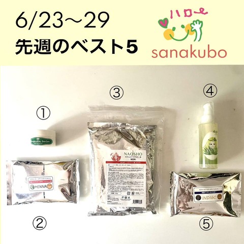 先週のベスト5! お盆休み天然ヘナで頭スッキリ♪