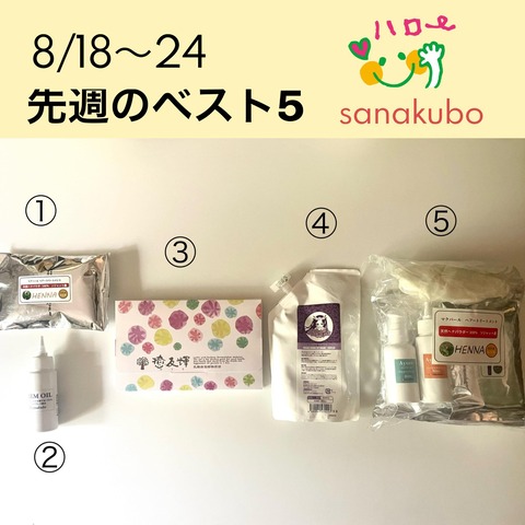 先週のベスト5! お盆休み天然ヘナで頭スッキリ♪