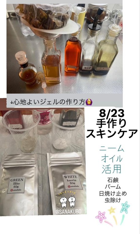 ニームオイルで 手作りスキンケア講習