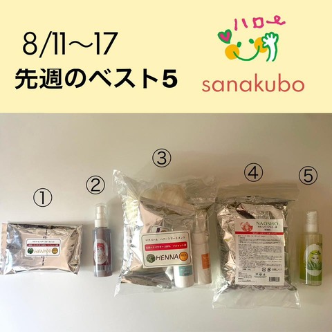 先週のベスト5! お盆休み天然ヘナで頭スッキリ♪